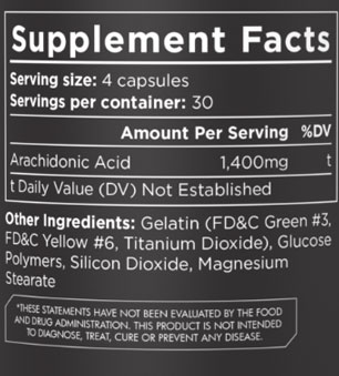 • 4 capsules contain 1400mg Arachidonic acid
