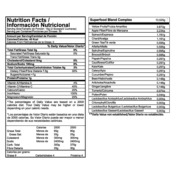 Shield es una mezcla de más de 20 vegetales triturados en polvo con un aporte de vitaminas, minerales, fibra y antioxidantes. Cuenta con ingredientes como: jengibre, cúrcuma, espirulina, alfalfa, espinaca, brócoli, alcachofa, habichuela, pepino, apio, té verde, papaína, y muchos más. Shield es ideal para ti si eres una persona que no disfruta de los vegetales necesarios en tu dieta diaria.
